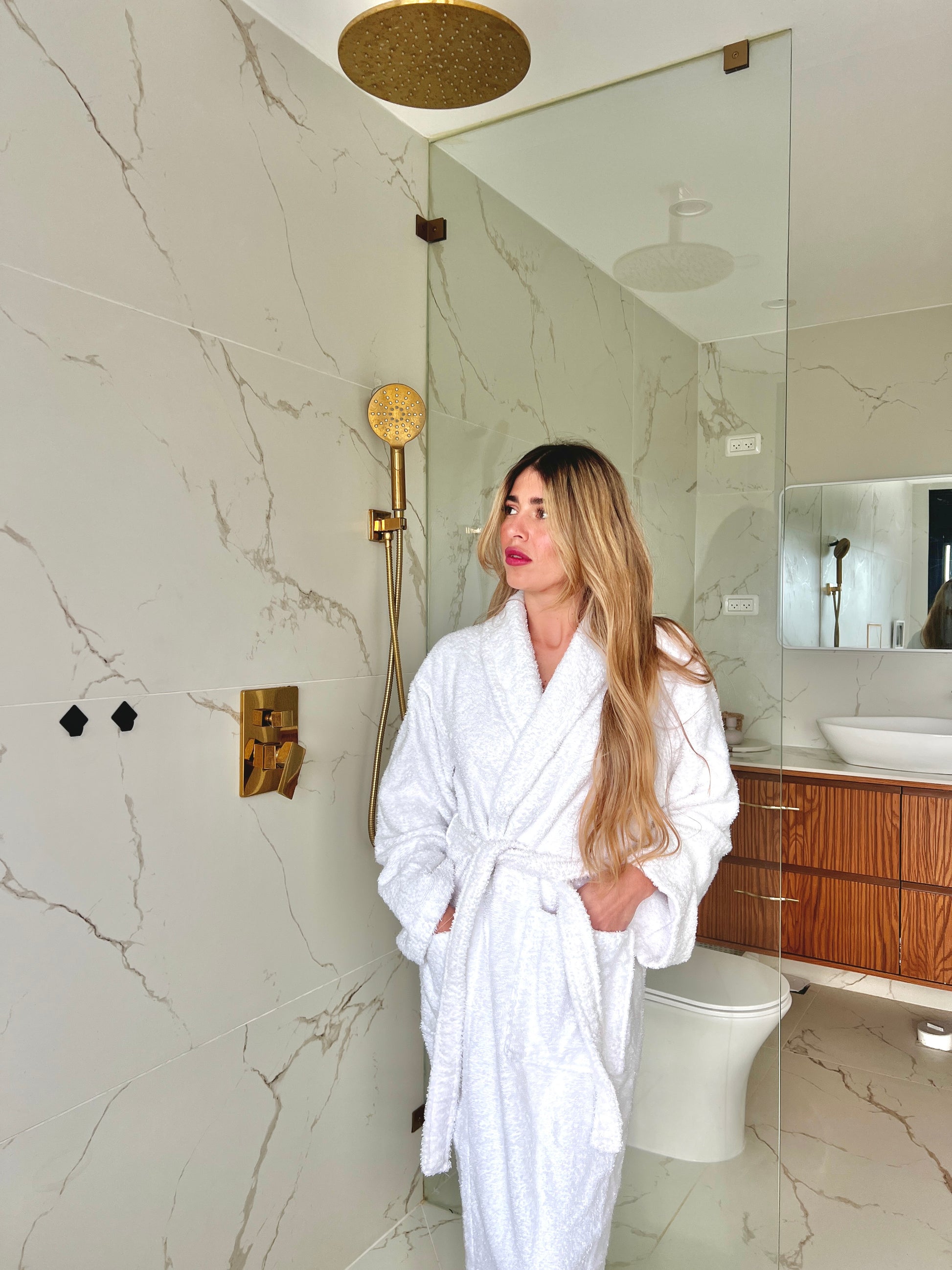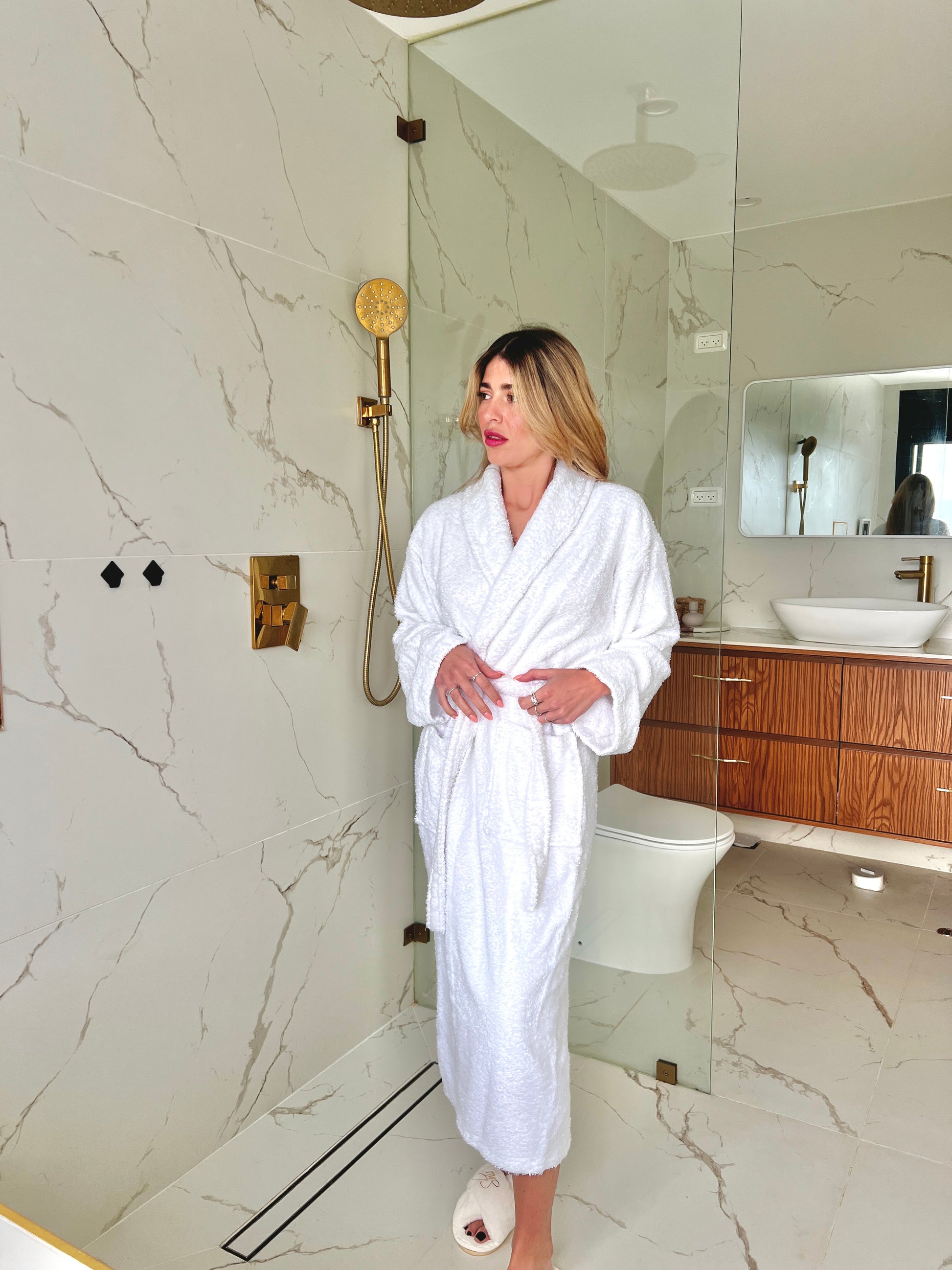 חלוק מגבת נעים במיוחד, מושלם להוספה למארזי כלה או כמתנה בפני עצמו. החלוק עשוי מחומר איכותי ורך, המעניק תחושת נעימות ונוחות בכל שימוש.