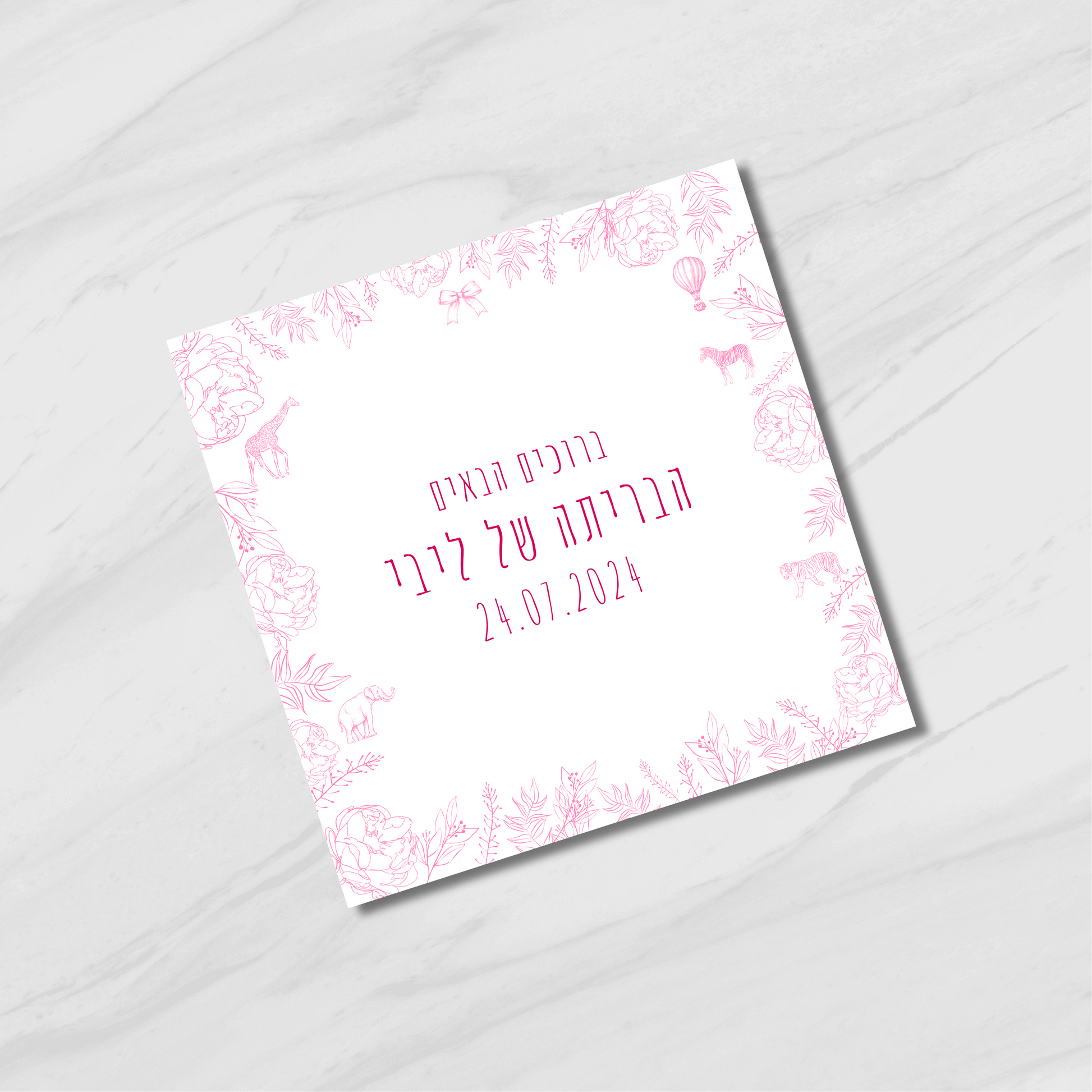 כרטיסי "ברוכים הבאים" בעיצוב גן חיות ורוד