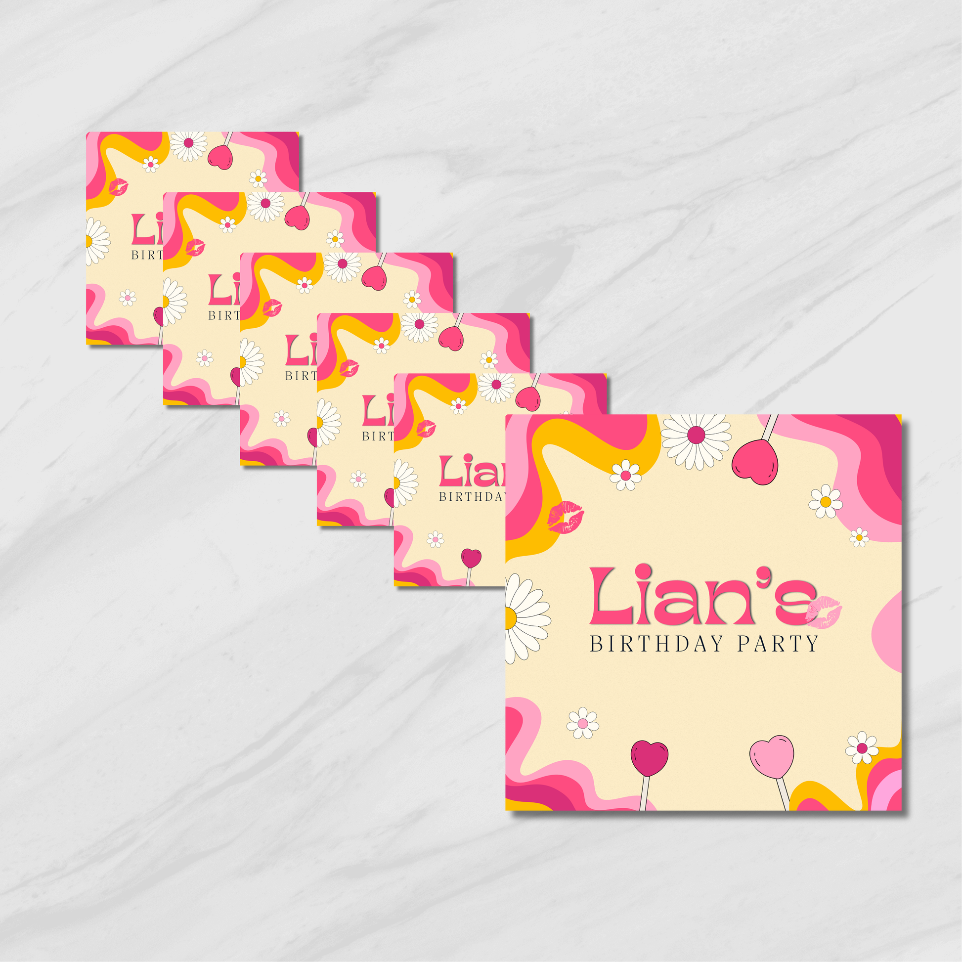 הכניסו וייב שמח, צעיר ומקורי עם מדבקות בעיצוב גרובי צבעוני ונועז. העיצוב כולל שילובי צבעים חיים, קווים מעוגלים ודוגמאות בהשראת סגנון הרטרו – מושלם לאירועים עם סטייל! מתאים להדבקה על בקבוקי מים, צנצנות, שקיות מתנה, מעטפות, מארזים ועוד – כל מה שצריך כדי להפוך את הפרטים הקטנים לחלק מהעיצוב הכללי.