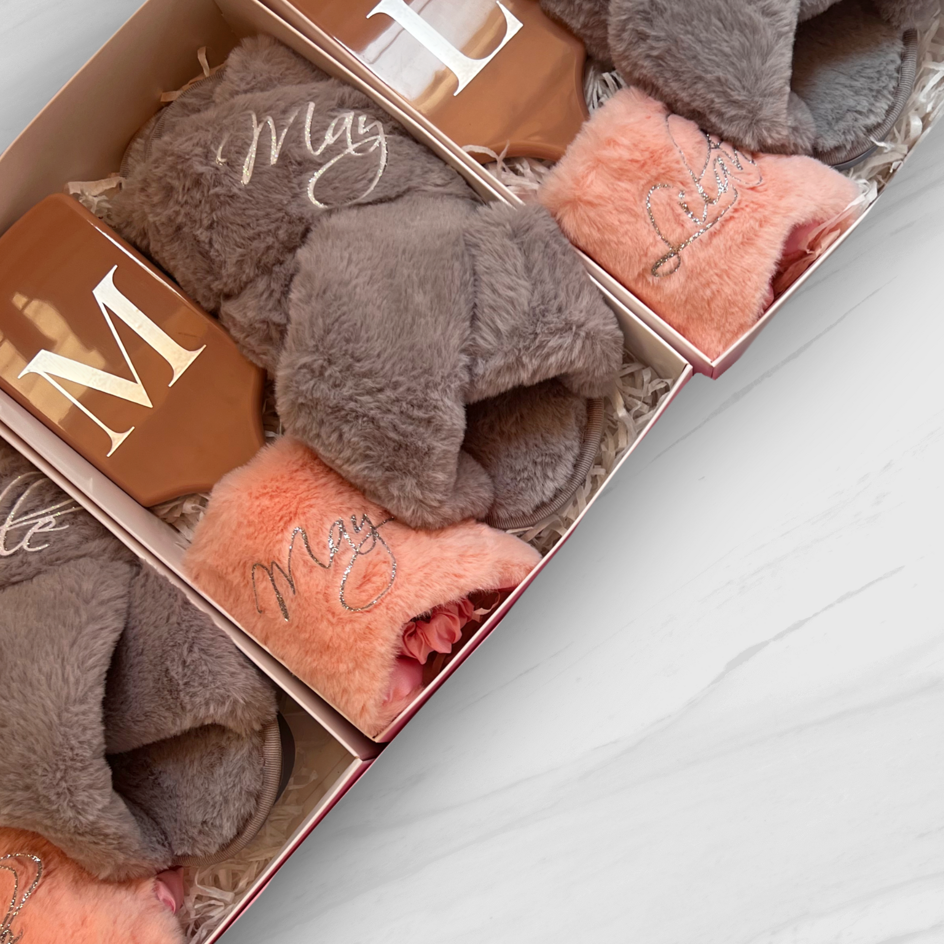 נעלי בית פרוותיות עם שם במבצע מגיעות ארוזות בקופסה בצבעים: טורקיז, אפור, קשת ובורדו במידה 36-37. ניתן לשלב במארזים.
