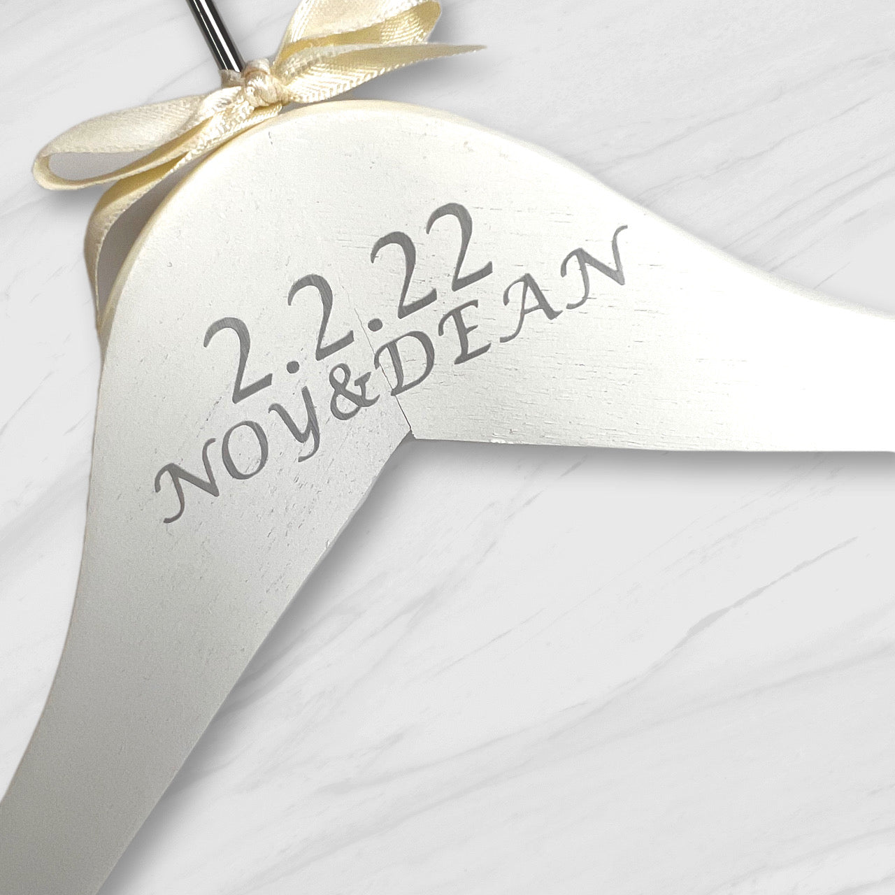 קולב לבן ממותג מושלם לצילומי השמלה ביום החתונה. מזכרת מהממת מיום מושלם ומתנה נהדרת לכלה או חתן, ניתן להזמין את הפפיון במגוון צבעים