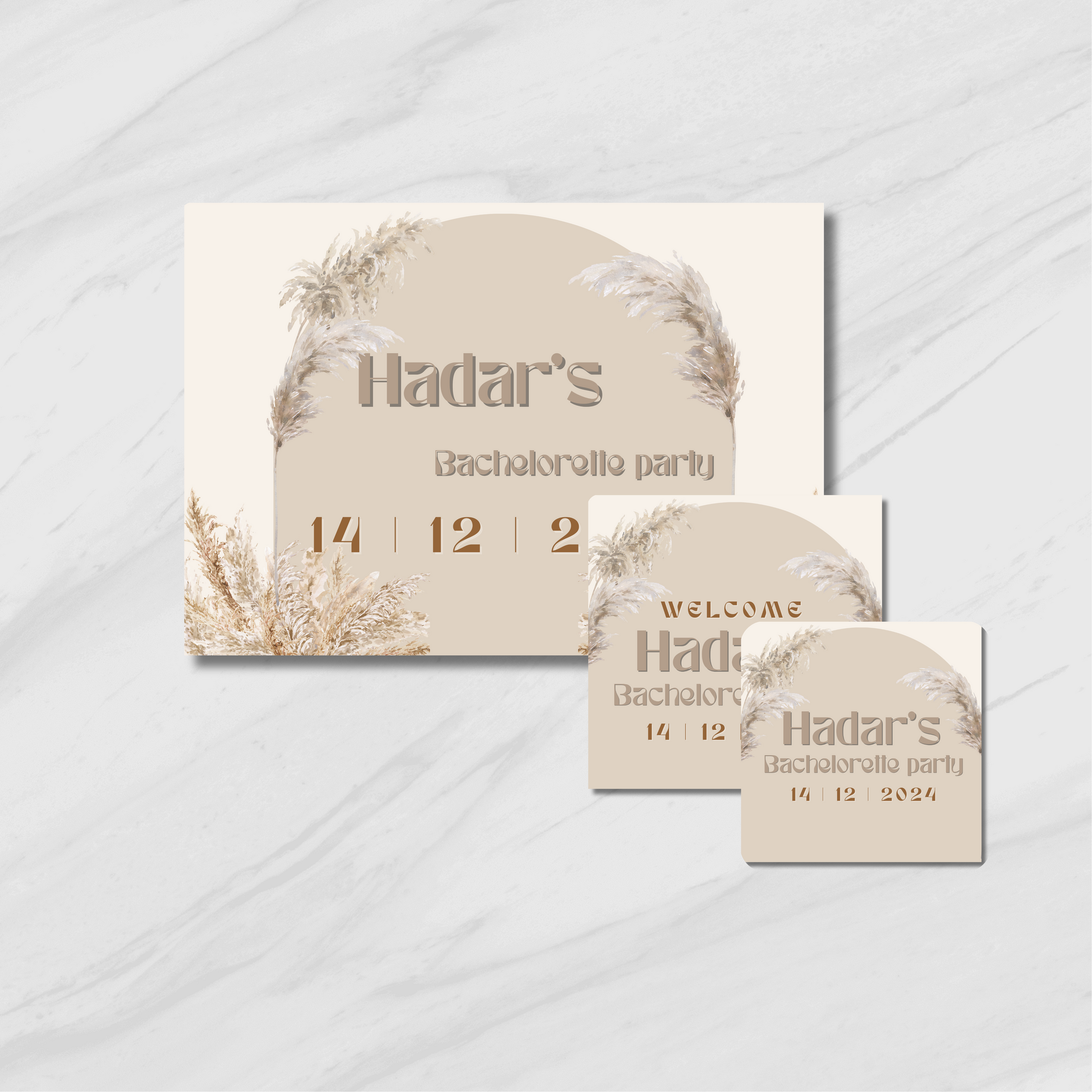 החבילה בעיצוב בוהו טבעי נועדה להכניס לשולחן שלך אווירה רגועה, טרנדית ומלאת נשמה – עם שילוב של פלטת צבעים ניטרלית, איורי פמפס עדינים וטיפוגרפיה מודרנית ונקייה.