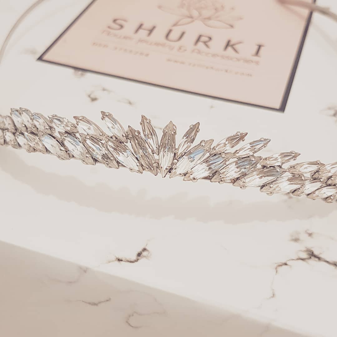 קשת שיער יוקרתית ומשובצת באבני סברובסקי מרהיבות, בעיצוב אלגנטי שמזכיר מניפה קריסטלית עדינה. מבנה הקשת יוצר מראה מלא נוכחות וזוהר, והיא מצופה כסף 925 למראה עשיר ומוקפד.